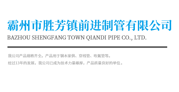 Bazhou Shengfang Town Qiandi Pipe Co., Ltd. 霸州市勝芳鎮前進制管有限公司位于河北霸州市勝芳鎮開發區,地處京、津、保三大城市中心地帶。北距北京120公里,東距天津45公里,西有京九鐵路,北有津保高速公路貫通。